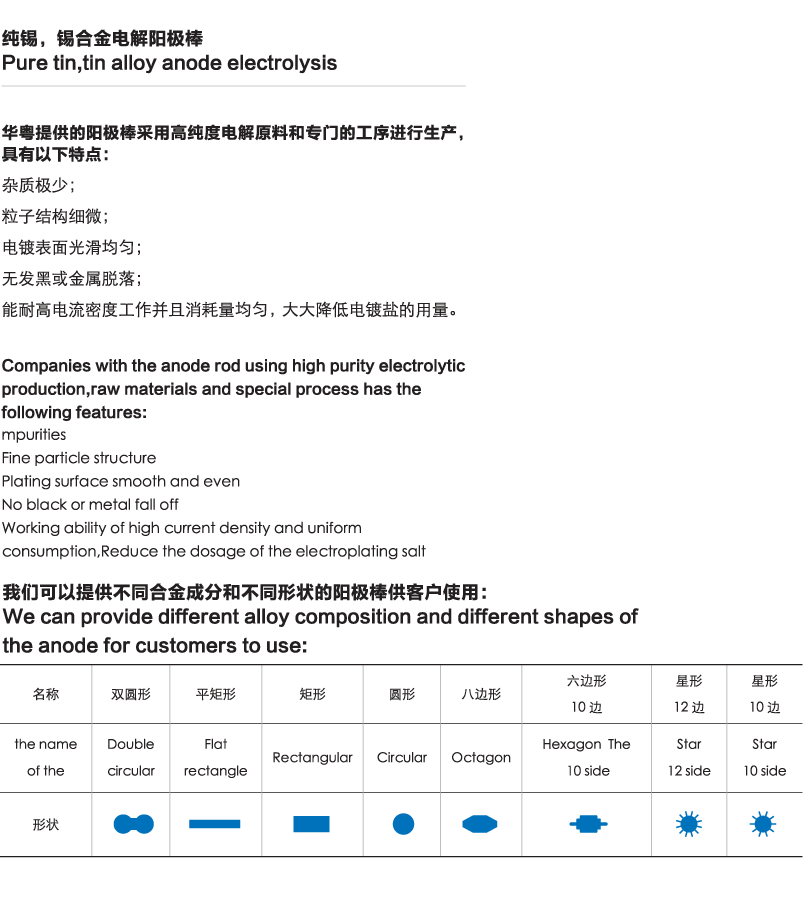您的位置:首頁 >> 產品詳情>> 純錫/錫合金電解陽極棒